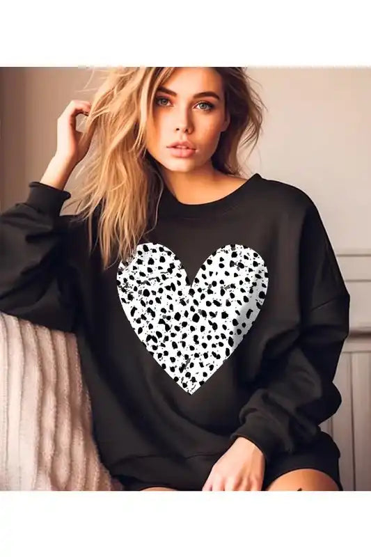 VALENTINE,GRUNGE DISTRESSED DALMATIAN PRINT HEART UNISEX FLEECE SWEATSHIRT,GRAPHIC TEE,GRAPHIC TSHIRTS,TSHIRTS,TEES