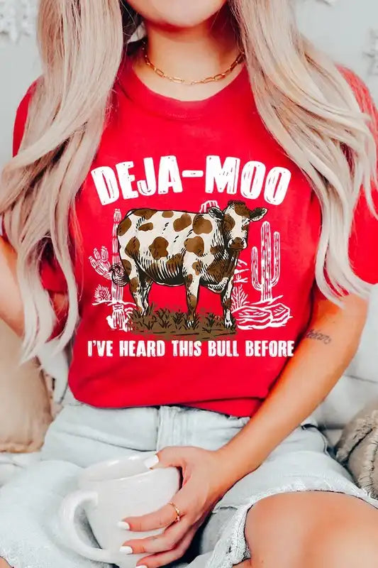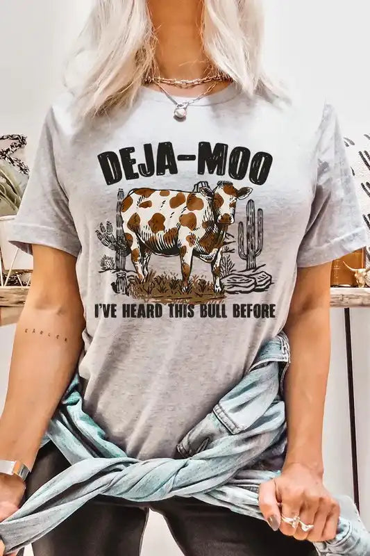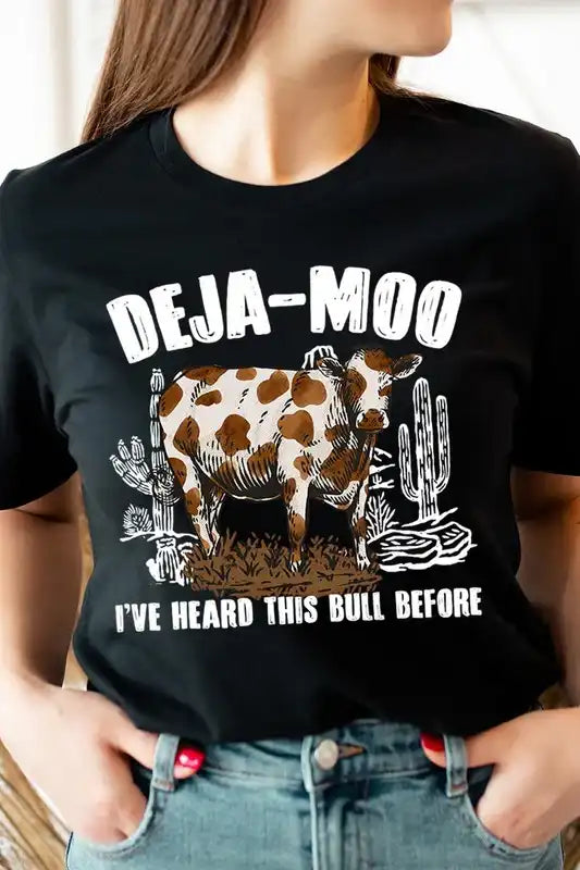 Deja Moo Heard This Bull Before Western Cow Graphic T Shirts.