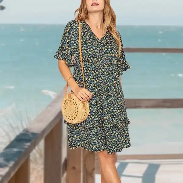 Introducing the captivating Floral V-Neck Ruffle Dress, a symphony of beauty and femininity that will elevate your style to unparalleled heights.