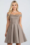 This fashionable dress features a flattering A-line silhouette that cinches naturally at your waist, ensuring ease and confidence. The off-shoulder neckline adds charm and reveals your collarbones in a graceful way. With its sleeveless design, you’ll stay cool and comfortable while dancing, mingling, or simply enjoying a lively night. The knee-length cut exudes poise and makes dressing up for any occasion a breeze, giving you endless versatility.